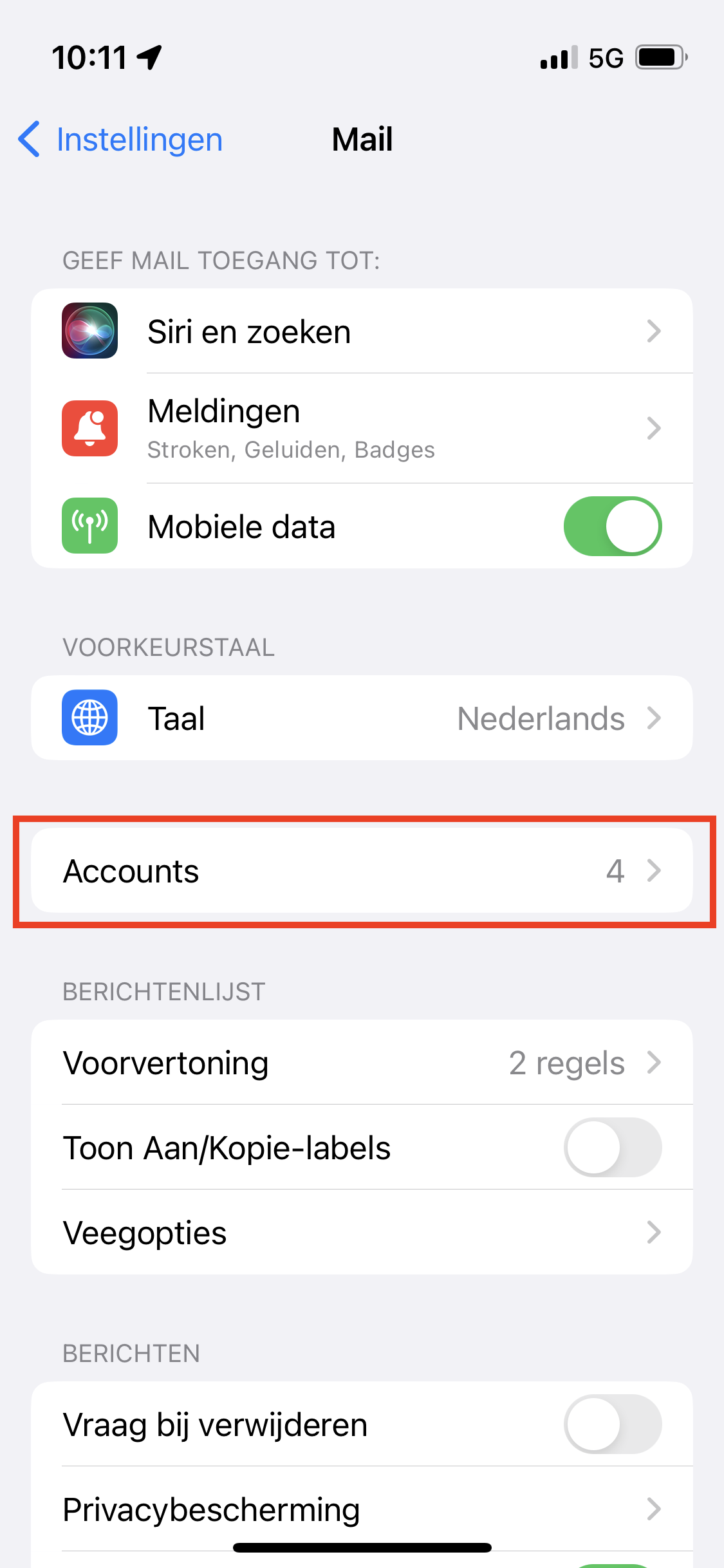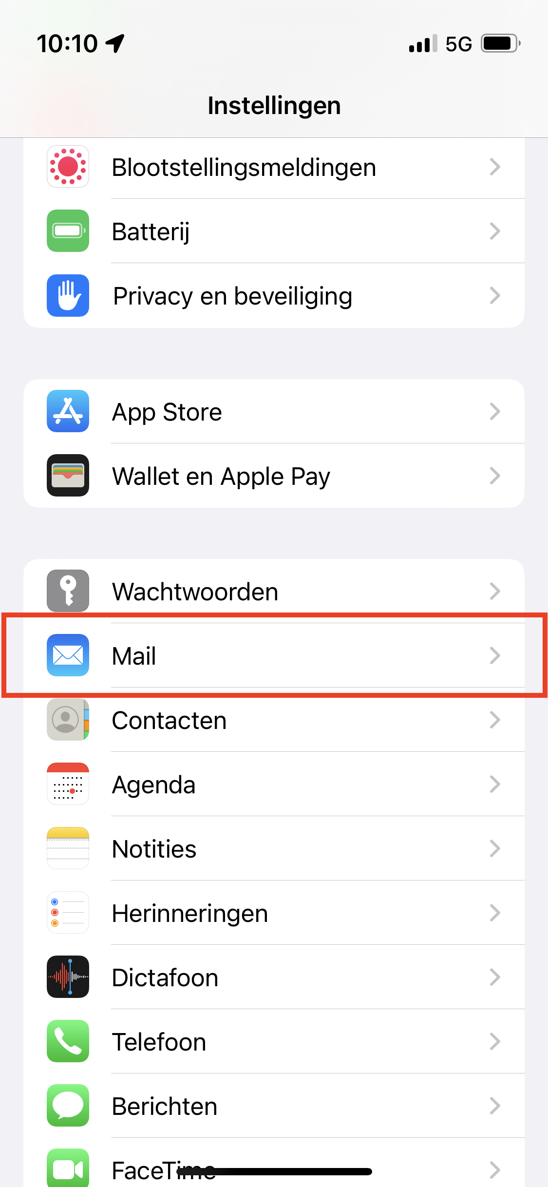 Open de instellingen op je telefoon en kies vervolgens ‘Mail’.