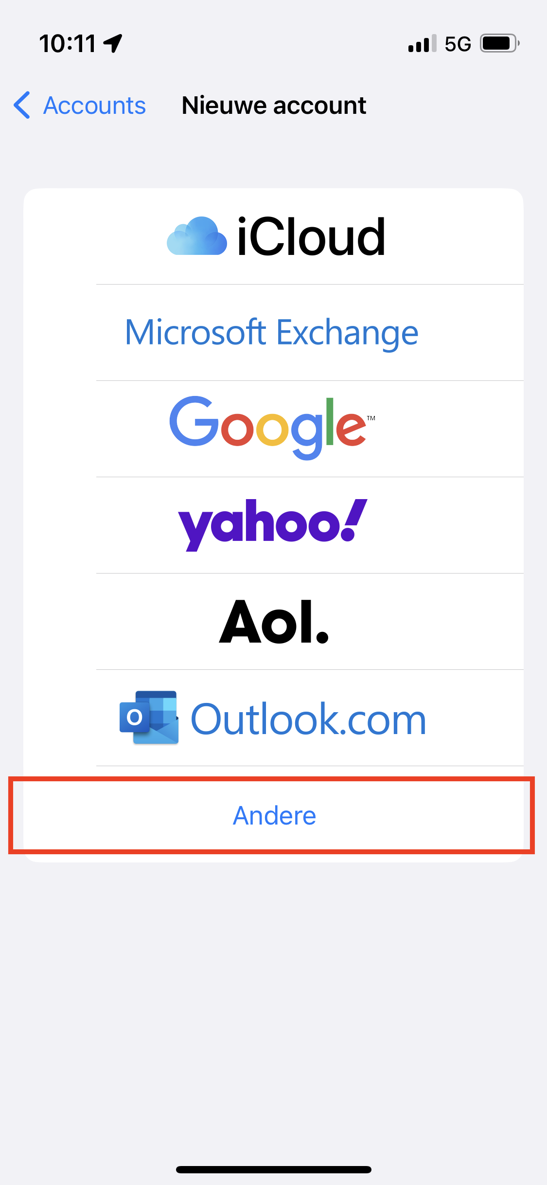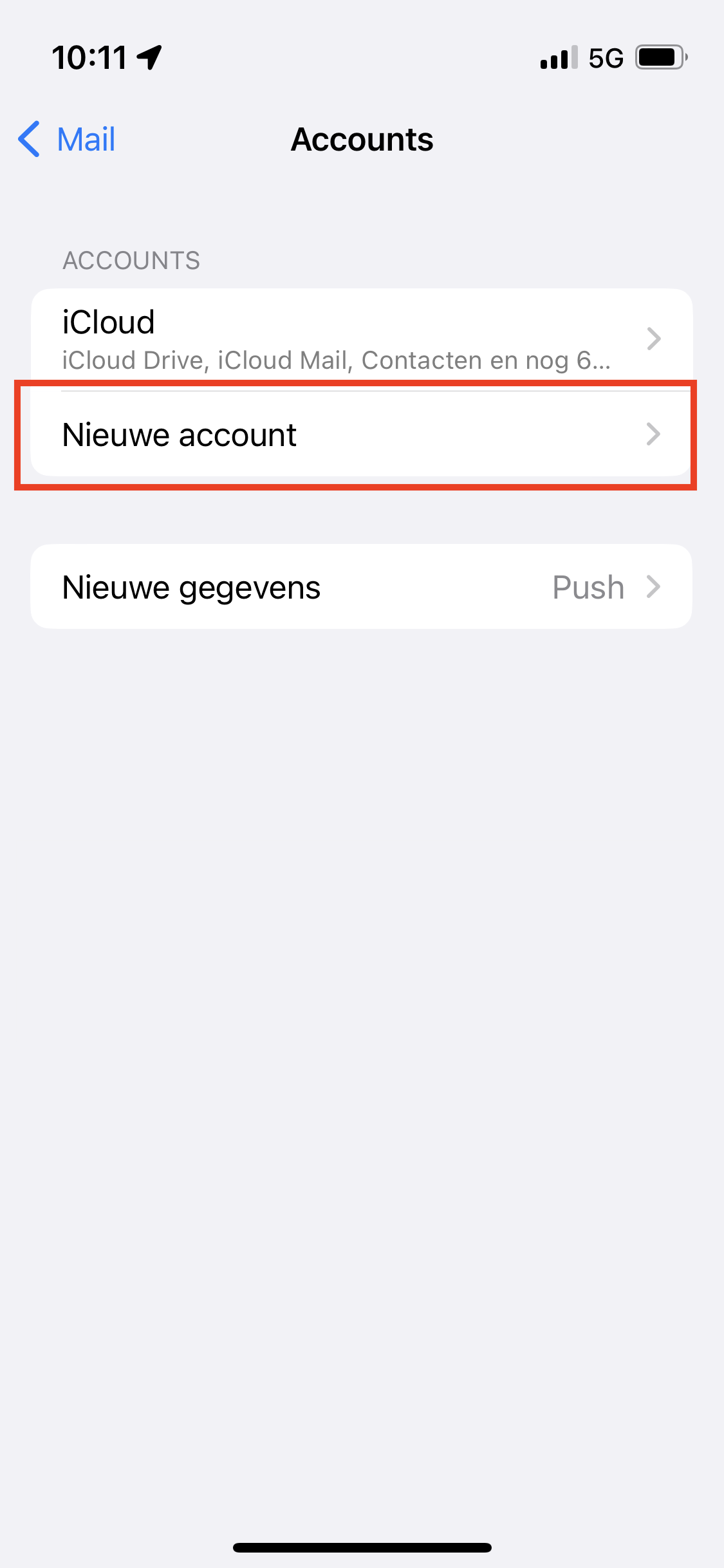 Klik op ‘Nieuwe account’ om een nieuw email-adres toe te voegen.
